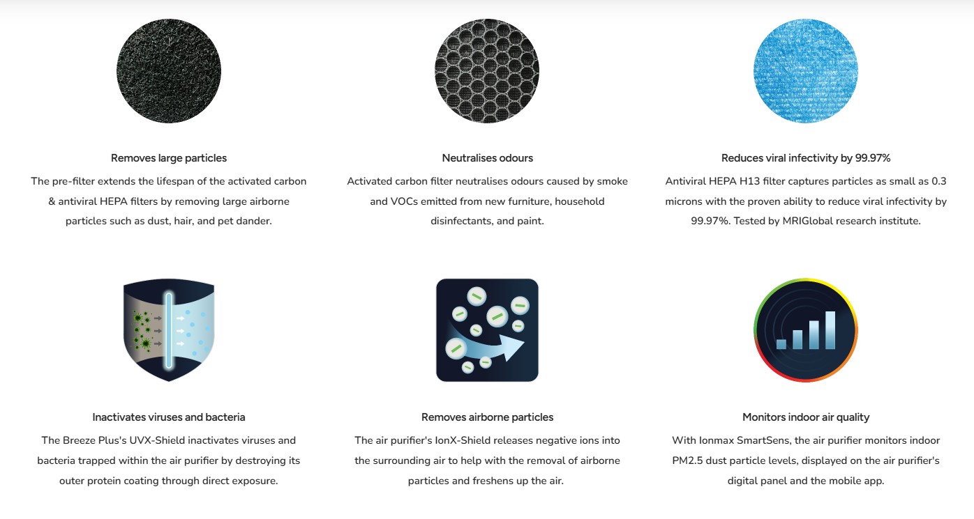 Ionmax Breeze Plus Smart Air Purifier with Antiviral HEPA Filter